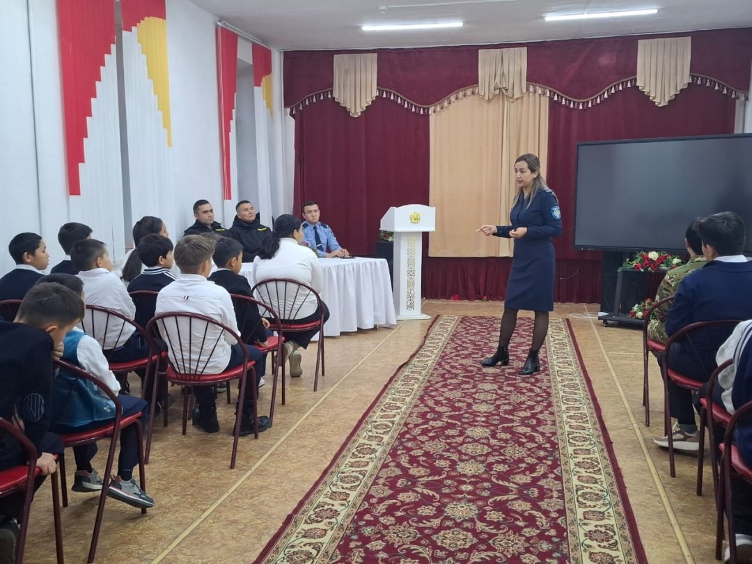 13.11.2025 жылы мектебімізге Акмолдаева Ақмарал полиция қызметкері ППВ инспекторы Әскерилендірілген Теміржол Күзеті ЖШС Алматы қаласында орналасқан Аймақ Аралық Жедел Әрекет Етуші Оңтайлы Топ қызметкерлері Орынбеков Мейрамбек Рахимбекович, Асан Руслан Тұрашұлы келіп «Теміржол бойы қауіпті аймақ, абай болыңыз!» тақырыбында және 287-бабы бойынша жауапкершілік туралы және кәмелетке толмаған жасөспірімдердің қатысуымен орын алатын құқықбұзушылықтың алдын алу және жолын кесу, туралы 6-7 сынып оқушыларына профилактикалық түсіндірме жұмыстар жүргізіп оқушылардың сұрақтарына жауап берді. Оқушыларға темір жолы бойында ойнауға болмайтынын, теміржолды кесіп жүгіруге, поезд келе жатқан кезде темір жолға жақын тұрмауына, теміржолды белгіленген орындардан ғана кесіп өтуге болатындығы жайлы айтып өтті.