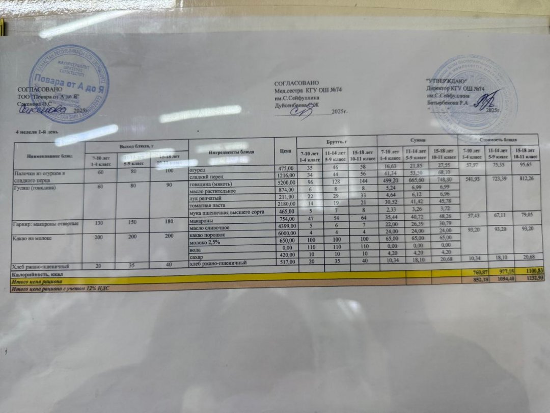 Мәзір/Меню 24.11.2025