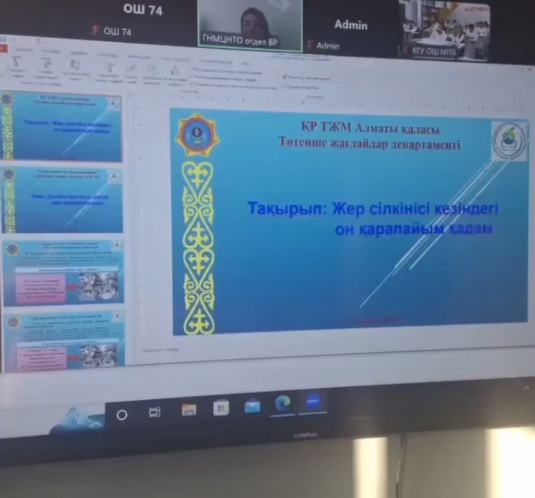 01.12.2025 ж. «Көмек» бағдарламасы аясында ҚР ТЖМ Алматы қаласы Төтенше жағдайлар департаменті оқушылармен онлайн форматта «Жер сілкінісі кезіндегі он қарапайым қадам» тақырыбында сабақ өткізді.