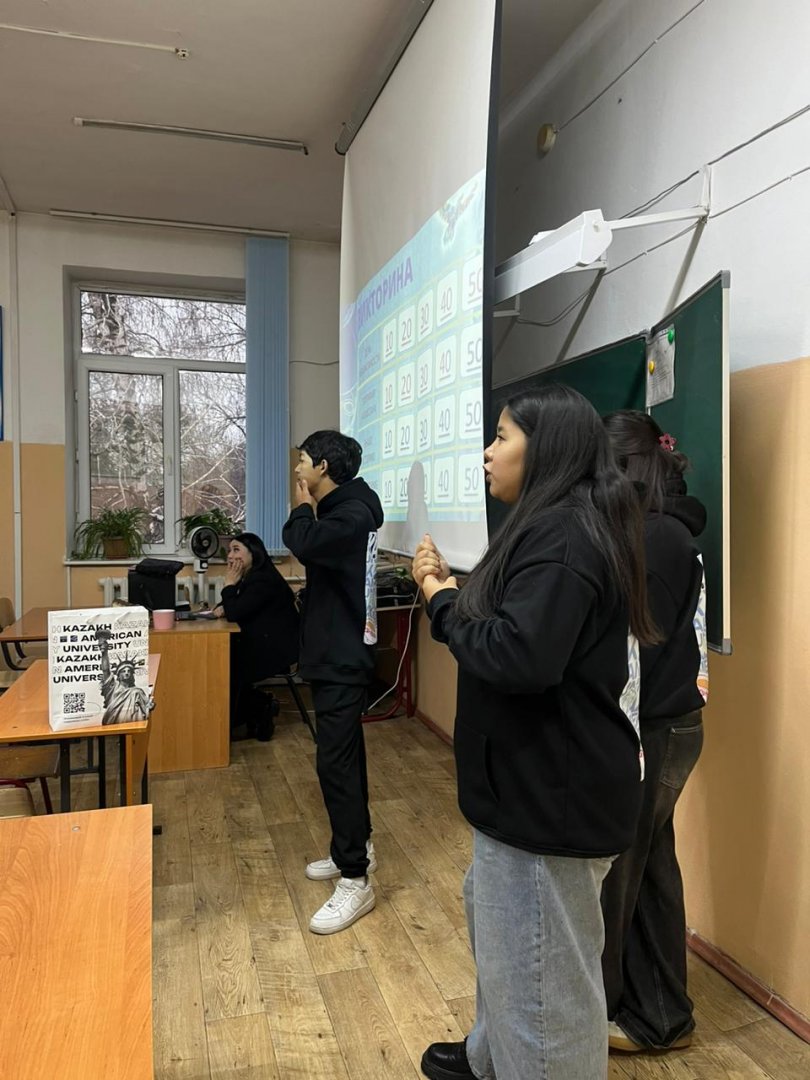 2025 жылғы 15 желтоқсанда Kazakh American University (KAU) университетінің амбассадорлары мектепке арнайы келіп, 11-сынып оқушыларына өздерінің жоғары оқу орны туралы таныстыру жұмысын жүргізді. Кездесудің негізгі мақсаты – бітіруші түлектерге кәсіби бағдар беру және шетелдік үлгідегі білім беру жүйесімен таныстыру болды.