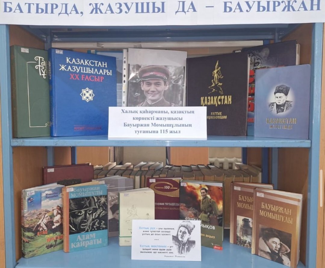 уына байланысты мектеп кітапханасында «Батыр да, жазушы да – Бауыржан» атты кітап көрмесі ұйымдастырылып, 10 «А» сынып оқушыларымен патриоттық-танымдық сағат өтті.