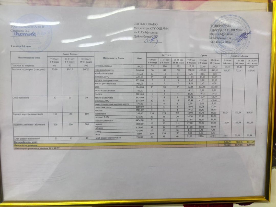 Мәзір/Меню 14.01.2026