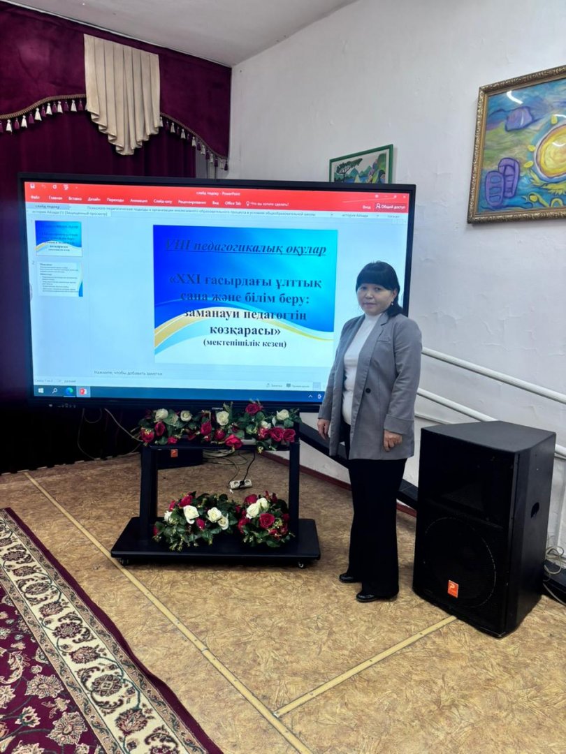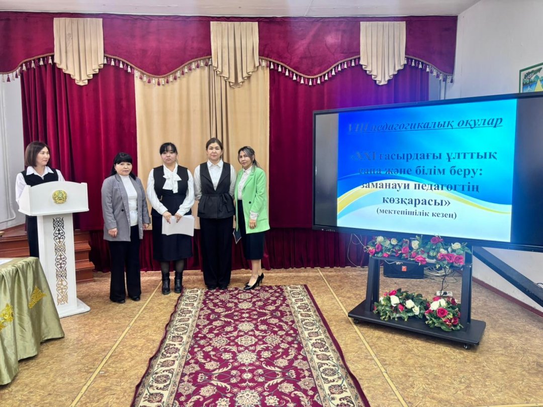 «ХХІ ғасырдағы ұлттық сана және білім беру: заманауи педагогтің көзқарасы» тақырыбындағы VIII педагогикалық оқуларының мектепішілік кезеңі болып өтті. Мақсаты — шығармашылықпен жұмыс істейтін педагогтеріміздің жаңашыл идеяларын ортаға салу, тәжірибе алмасуға жағдай жасау.