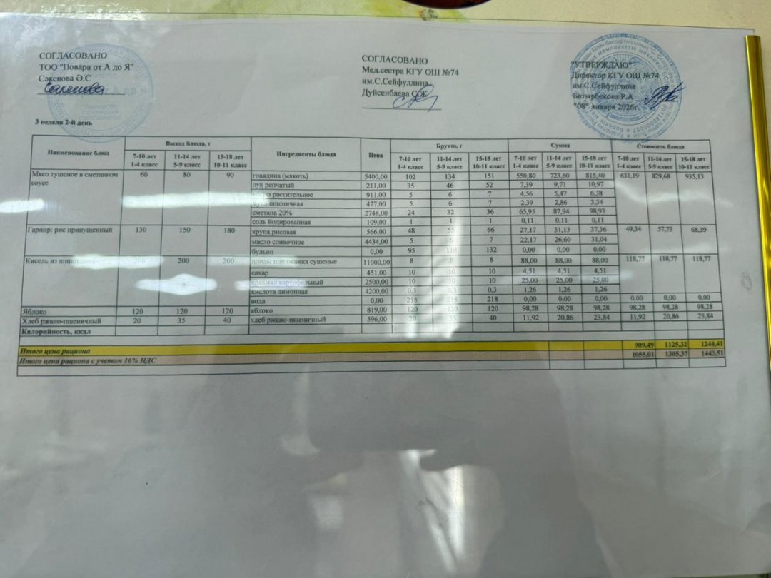 Мәзір/Меню 15.01.2026