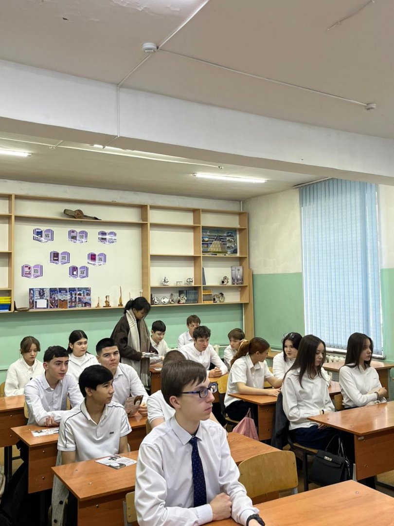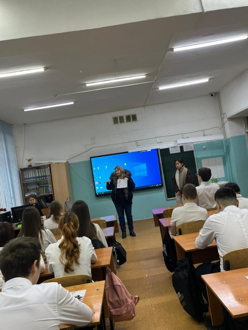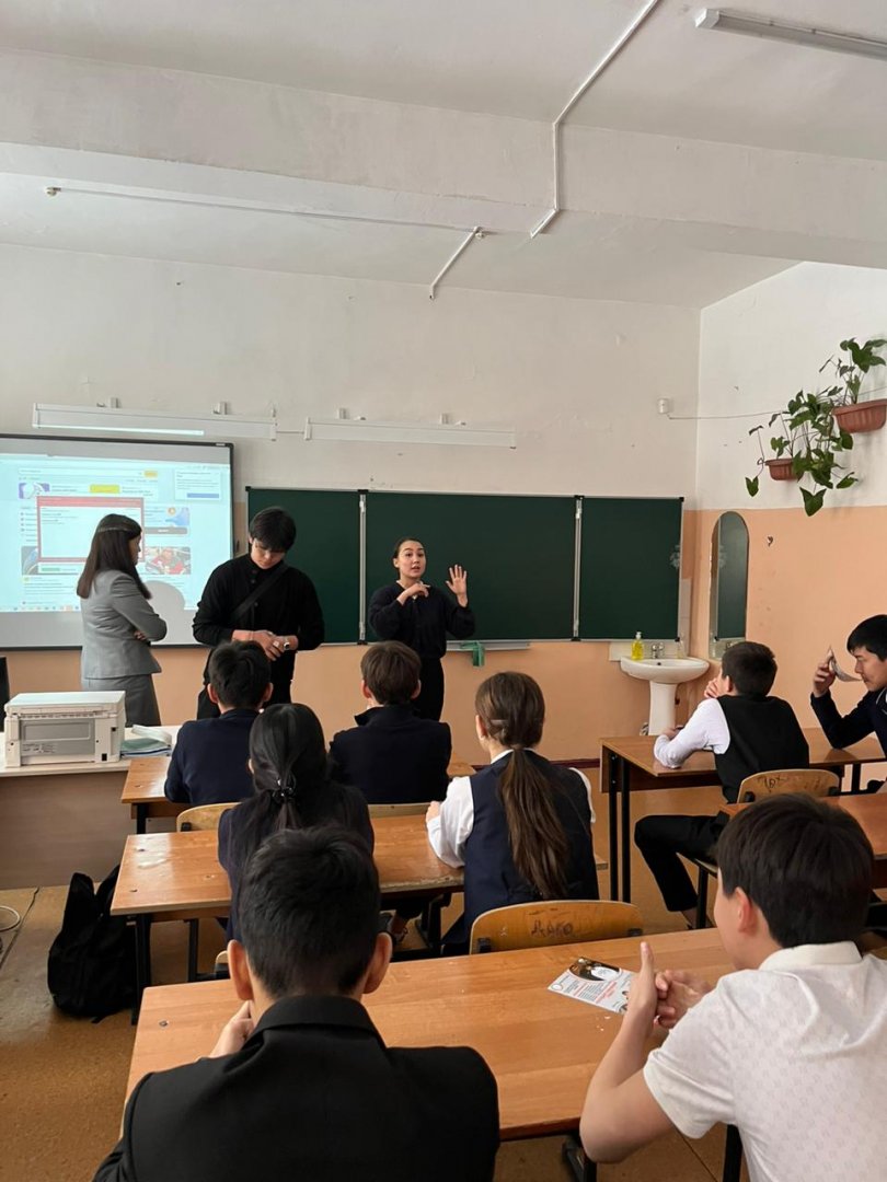 Бүгін «Adilet» колледжінің өкілдері мектепке келіп, 9–11 сынып оқушыларына арналған кәсіби бағдар беру жұмыстарын өткізді. Кездесу барысында оқушылар колледжде оқытылатын мамандықтар, оқу барысы, түсу талаптары және болашақтағы жұмыс мүмкіндіктері туралы толық ақпарат алды.
