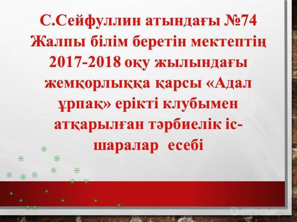 Коммунальное государственное учреждение «Общеобразовательная школа № 74 имени С.Сейфуллина» Управления образования города Алматы
